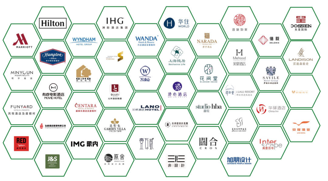 #酒店品牌:万豪、希尔顿、洲际、华住、首旅、东呈、世茂、雷迪森、格林、万达、凤悦、尚美、萨维尔、元开、携程、云隐东方、爱电竞、有戏、盛泰乐、弘峰、丽芮… …